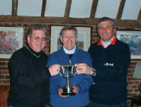 In the tightest finish for years, the Winter League finished on 19 Feb with victory for Ken Harvey, Bob Lawrence and Steve Simpkin (pictured below). Their victory is all the more remarkable because they won the overall title without winning any individual round (including a second-place, two thirds and two fourths). Just a single point separated the top three teams. Team 8's late surge into second place came with victory in the final round shooting gross 63 in the scramble format for a net 59.9 edging out Team 1 by one tenth of a shot! The Barker twins teamed with Bob Bridges just failed to secure the trophy which they won with their father last year.