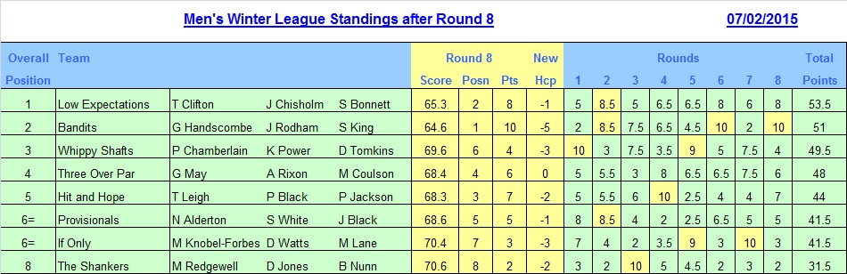 Men's Winter League Standings 2014-15